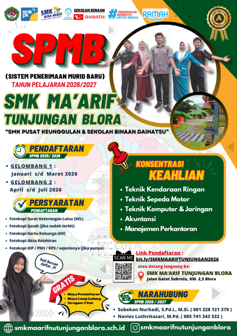 Yuk gabung bersama kami dan menjadi bagian dari SMK Ma'arif Tunjungan Blora